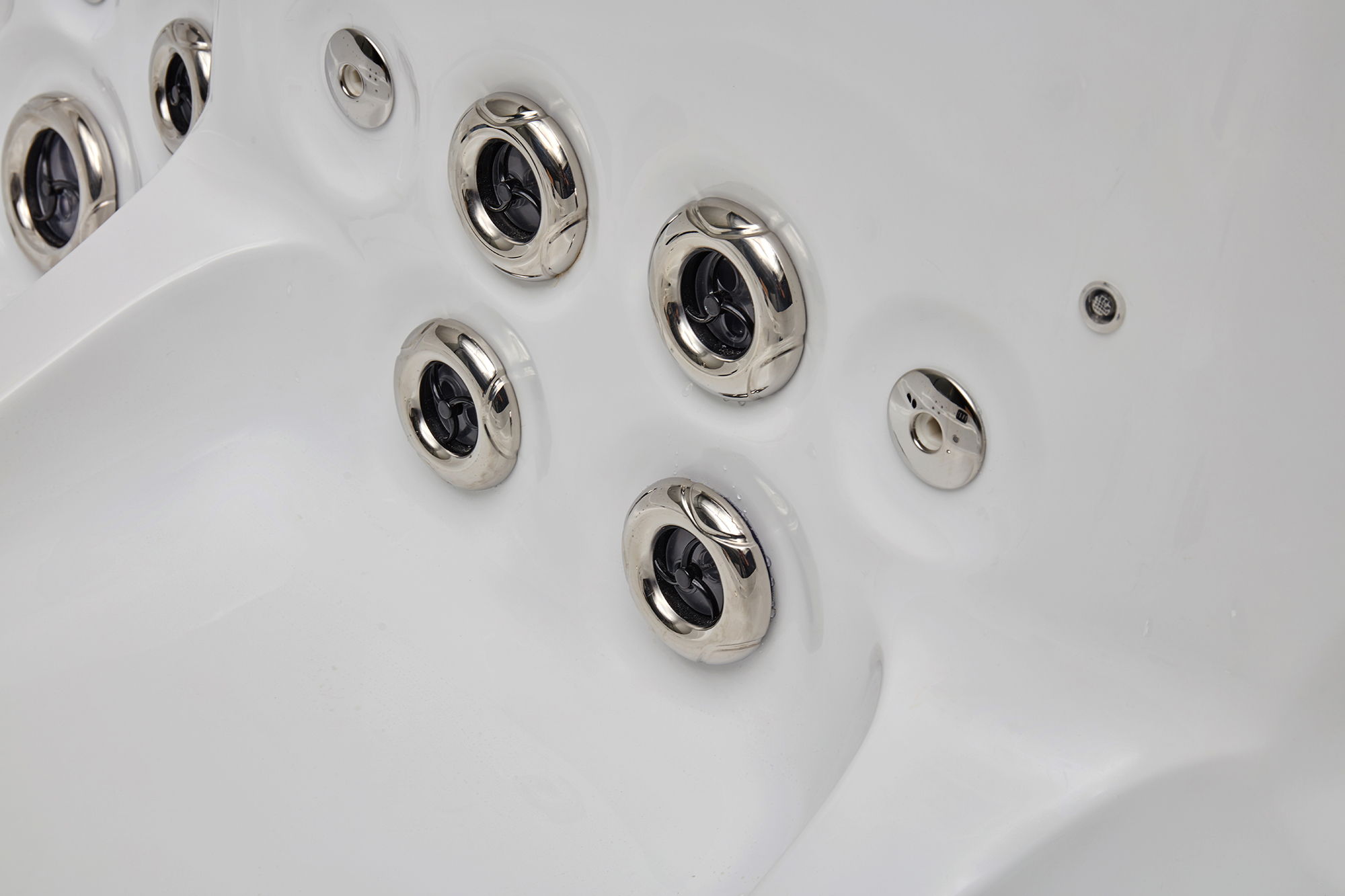 | Всего форсунок | Всего: 64 форсунок. 5"ротационная форсунка с LED-подсветкой:2шт 3.5"ротационная форсунка с LED-подсветкой:9шт 2.5"ротационная форсунка:5шт 3/4"форсунка:26шт Форсунки аэромассажа:22шт |